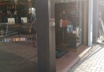 • ウィンドウに沿って歩くと当店の入り口がございます。