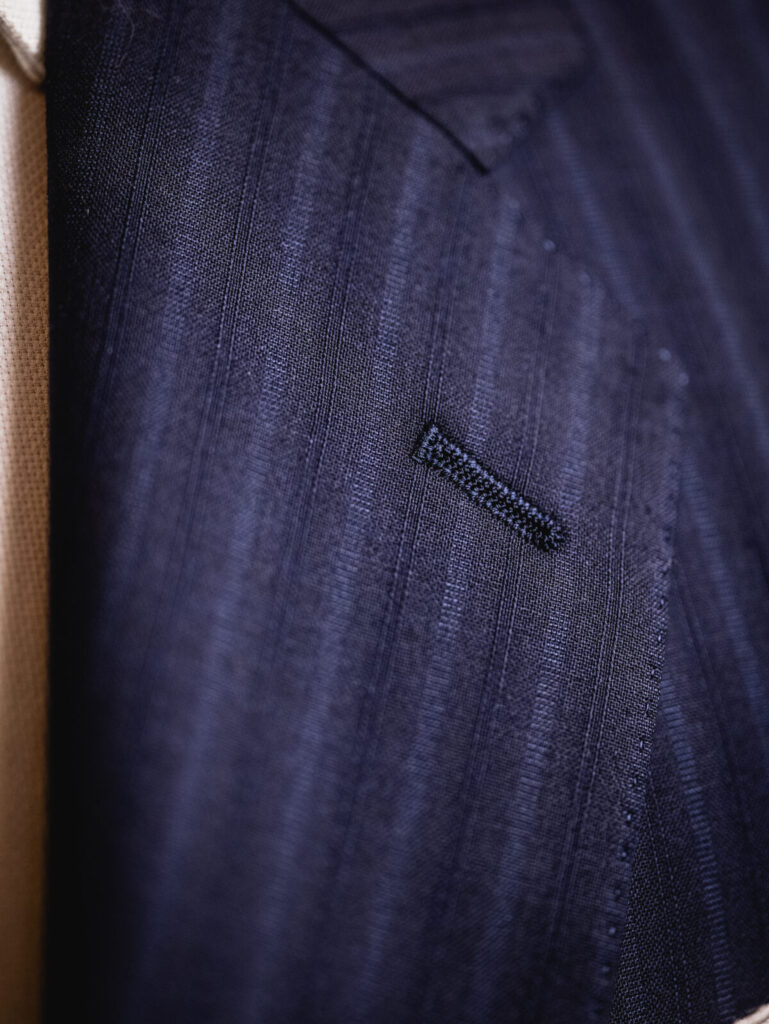最大の特徴は、染色と仕上げの工程で施された、太陽光を反射する特別なトリートメント加工。この加工により、体感温度の上昇を抑え、真夏の強い日差しの下でも快適に過ごせるスーツスタイルが実現しました。