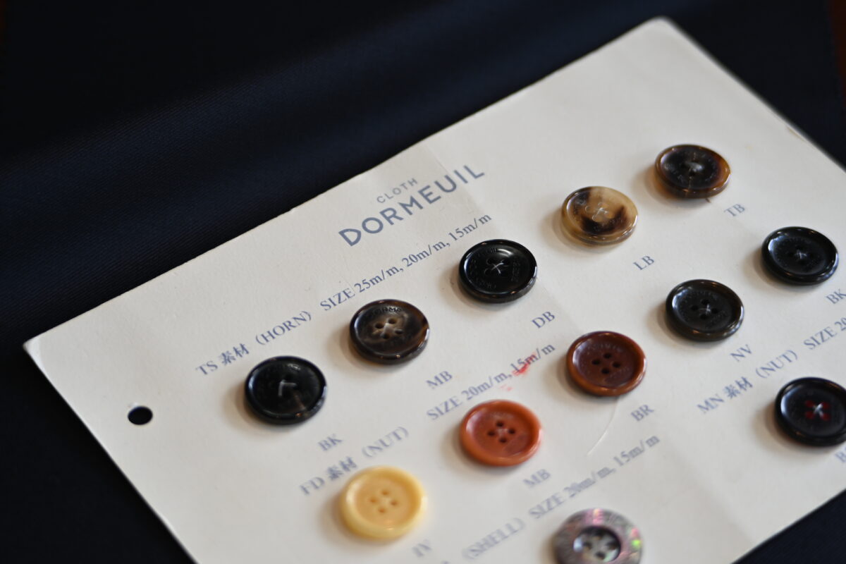 そして釦と裏地もオプションで、DORMEUILのものをお選びいただいています。