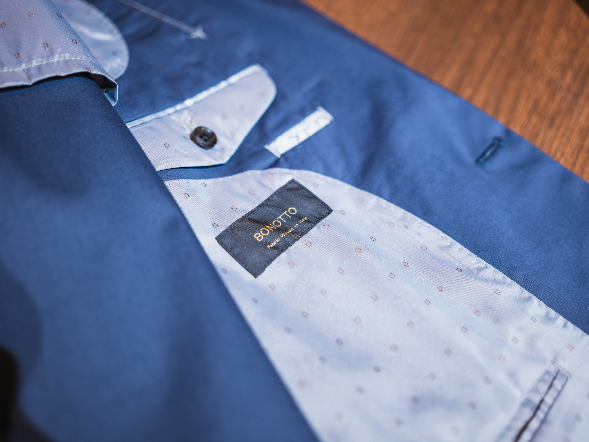 国産の生地商社さんオリジナルのブランドBONOTTOボノットというシリーズのブルーグレーのコットンスーツが仕上がりました。