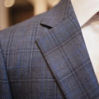 国産のネイビーチェック柄でご注文いただいたスーツが仕上がりました。