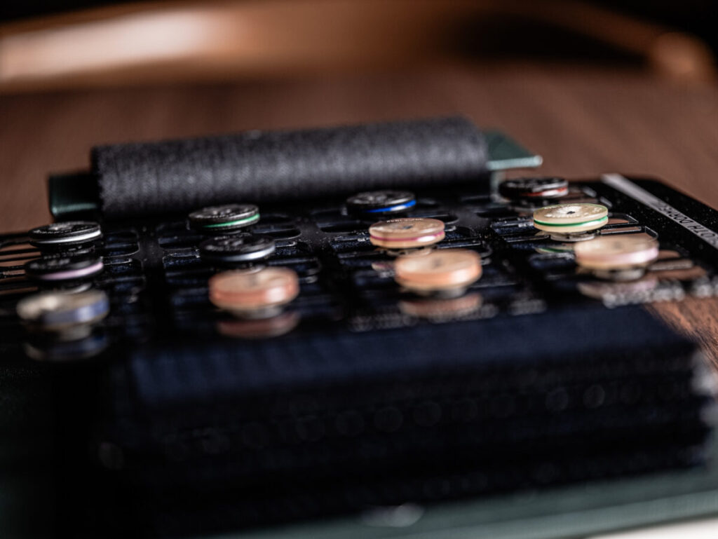↑カラーリング付きのドーメルらしいロゴ入り釦
