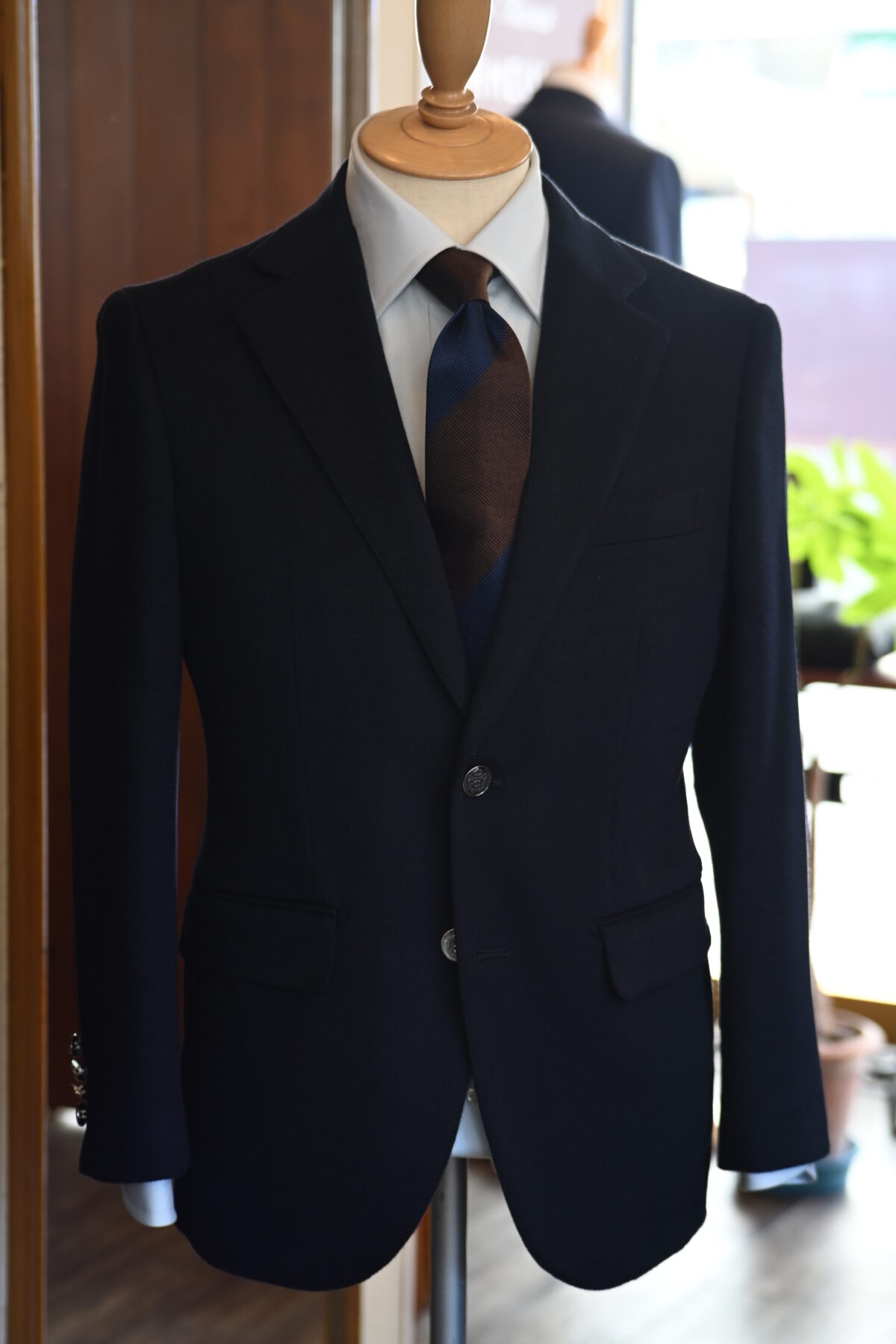 ・裏地、釦⇒ネイビーペイズリー裏地、メタル釦