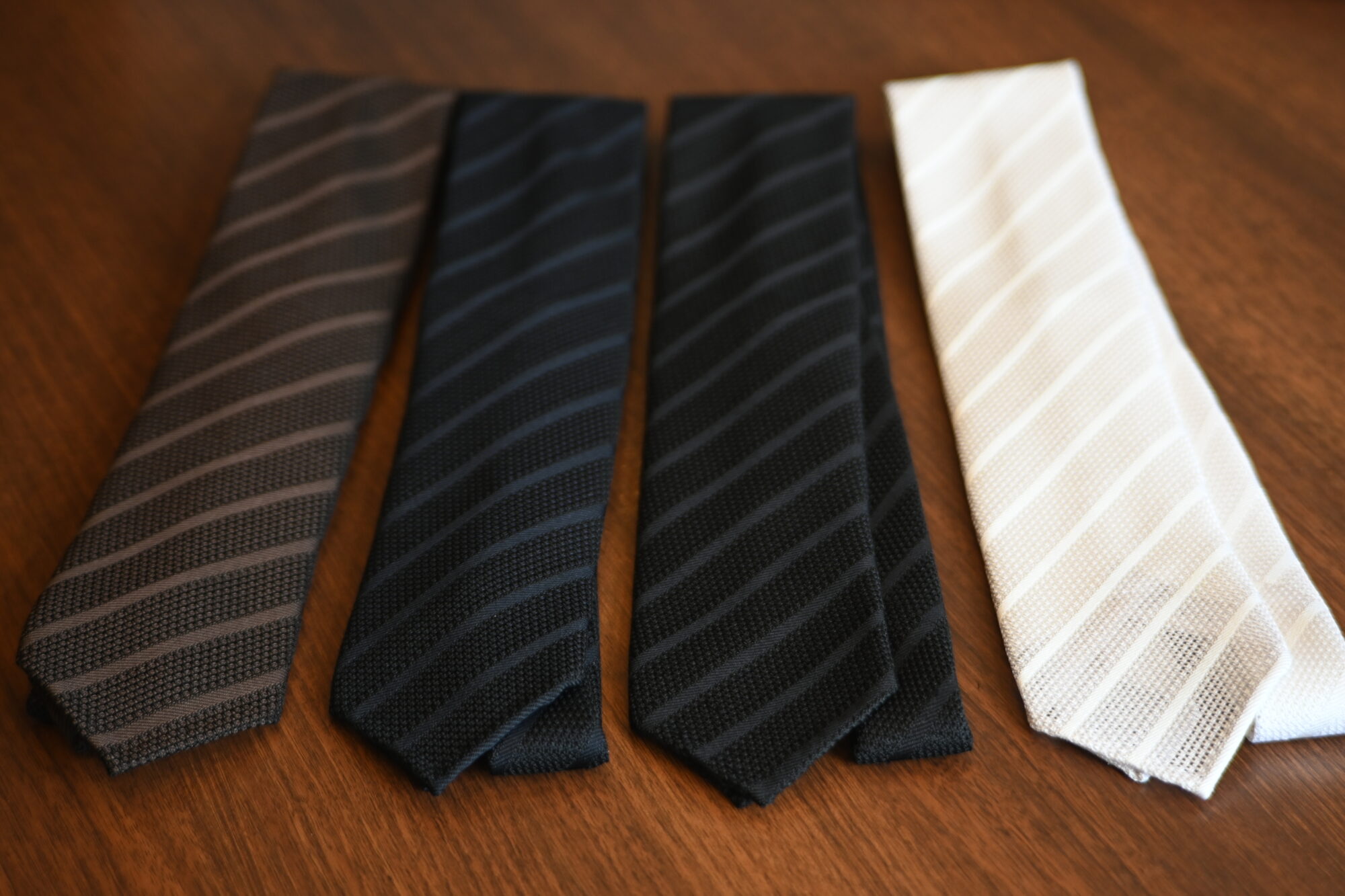 リネン+シルクやニットタイ、オープンガーゼ構造の清涼感のあるタイなど、初夏のVゾーンを彩る「軽快な1本」が届きました。