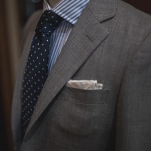 イタリアの生地ブランドCANONICO(カノニコ)のグレーのチェック柄で仕立てたシングルスーツのオーダー事例